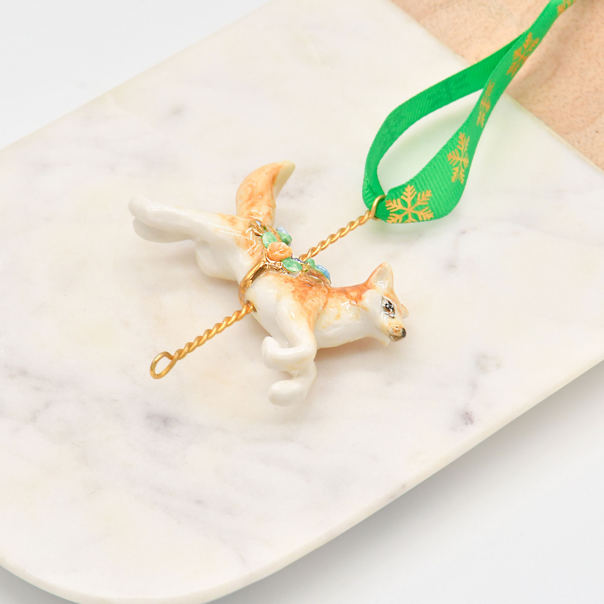 Symbolizing cleverness and warmth, this porcelain fox decoration adds a touch of natural beauty and sophistication to your Christmas tree. Perfect for rustic, woodland, or modern holiday themes, it’s a timeless piece that blends charm and elegance effortlessly.