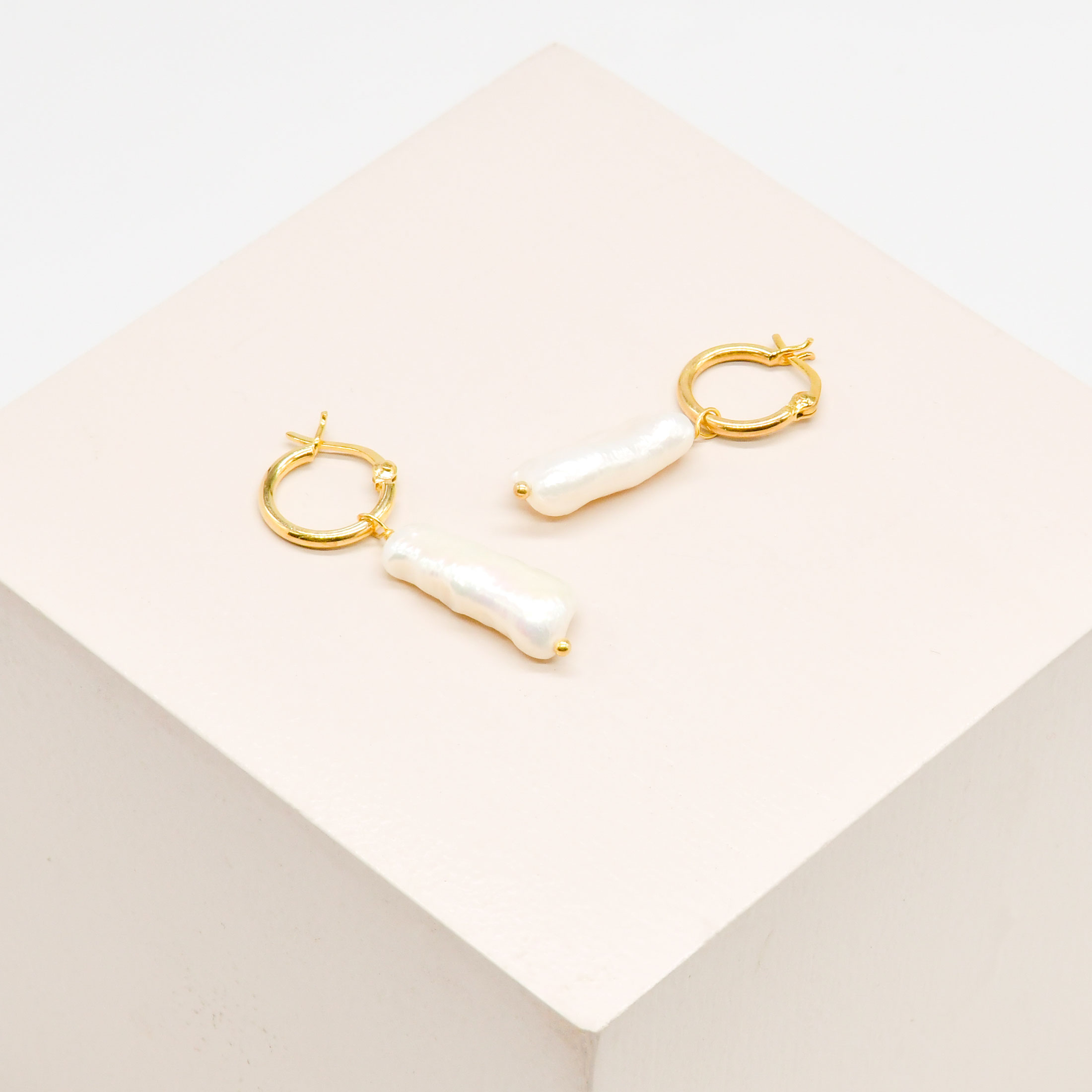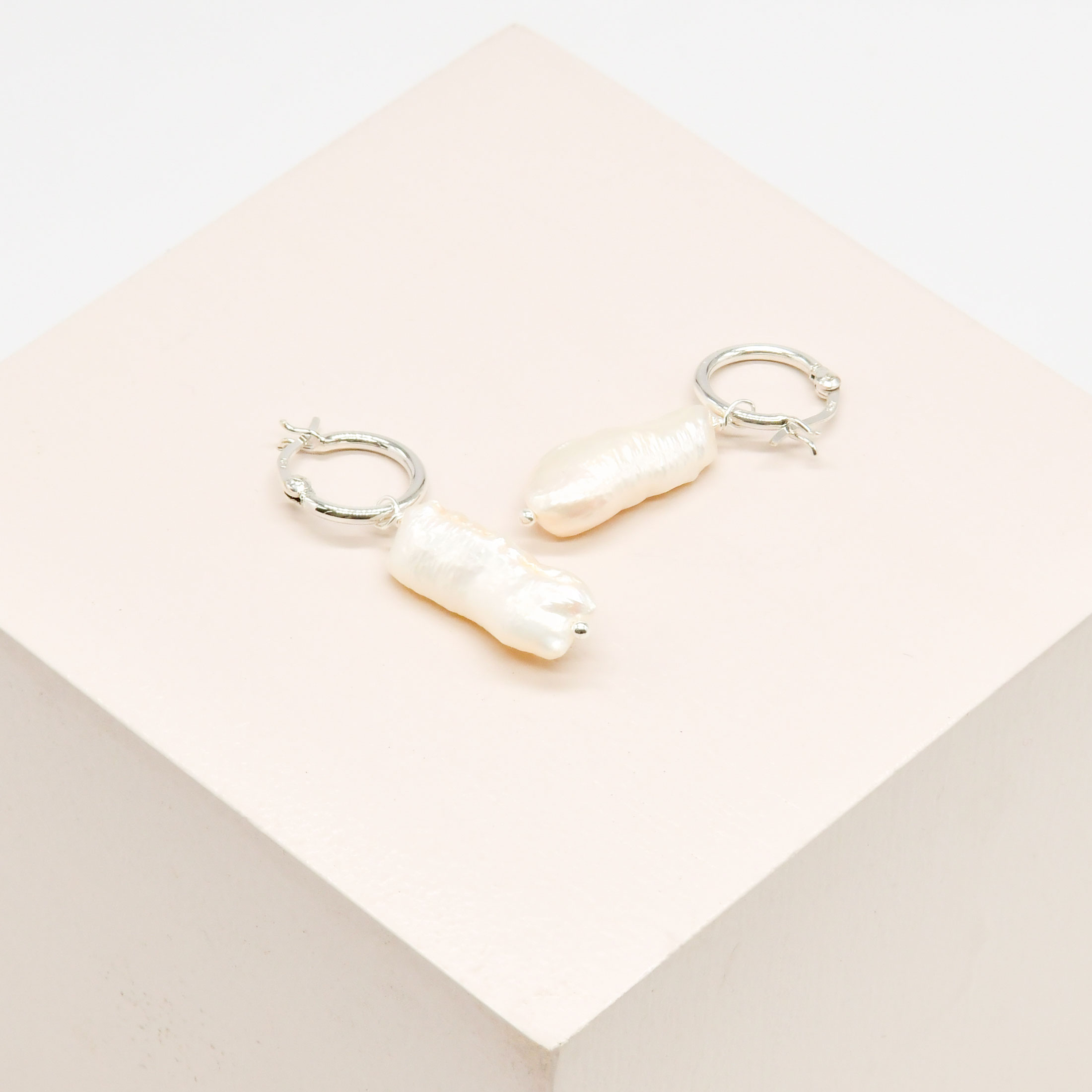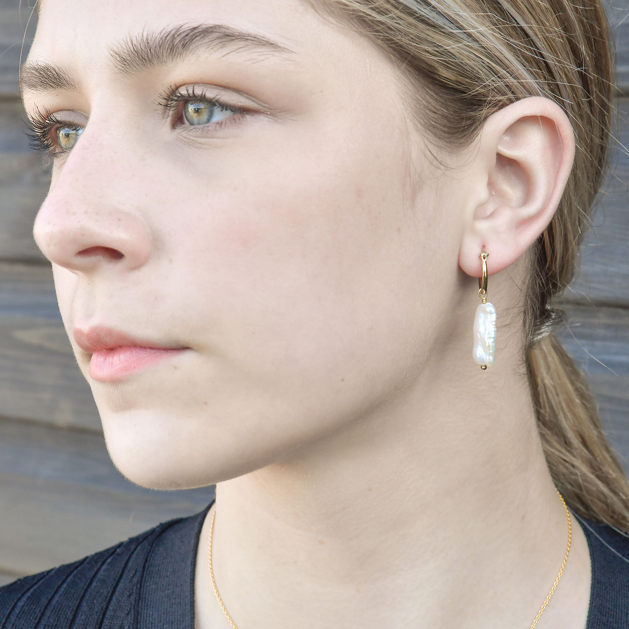 The pearl size is around 2×0.8×0.6 cm. Earring hoop dia is 1.4 cm. Drop length is 4 cm.
