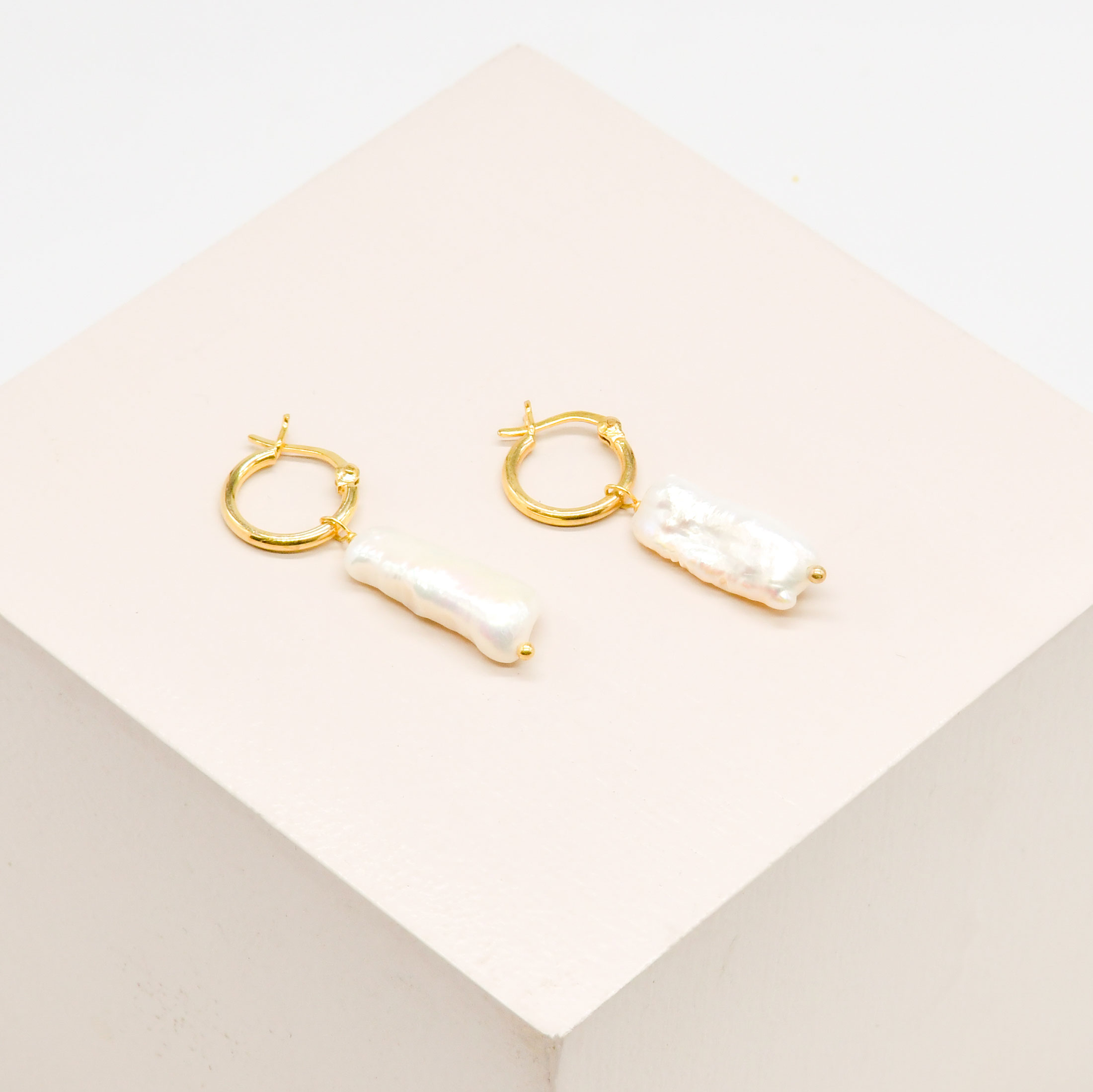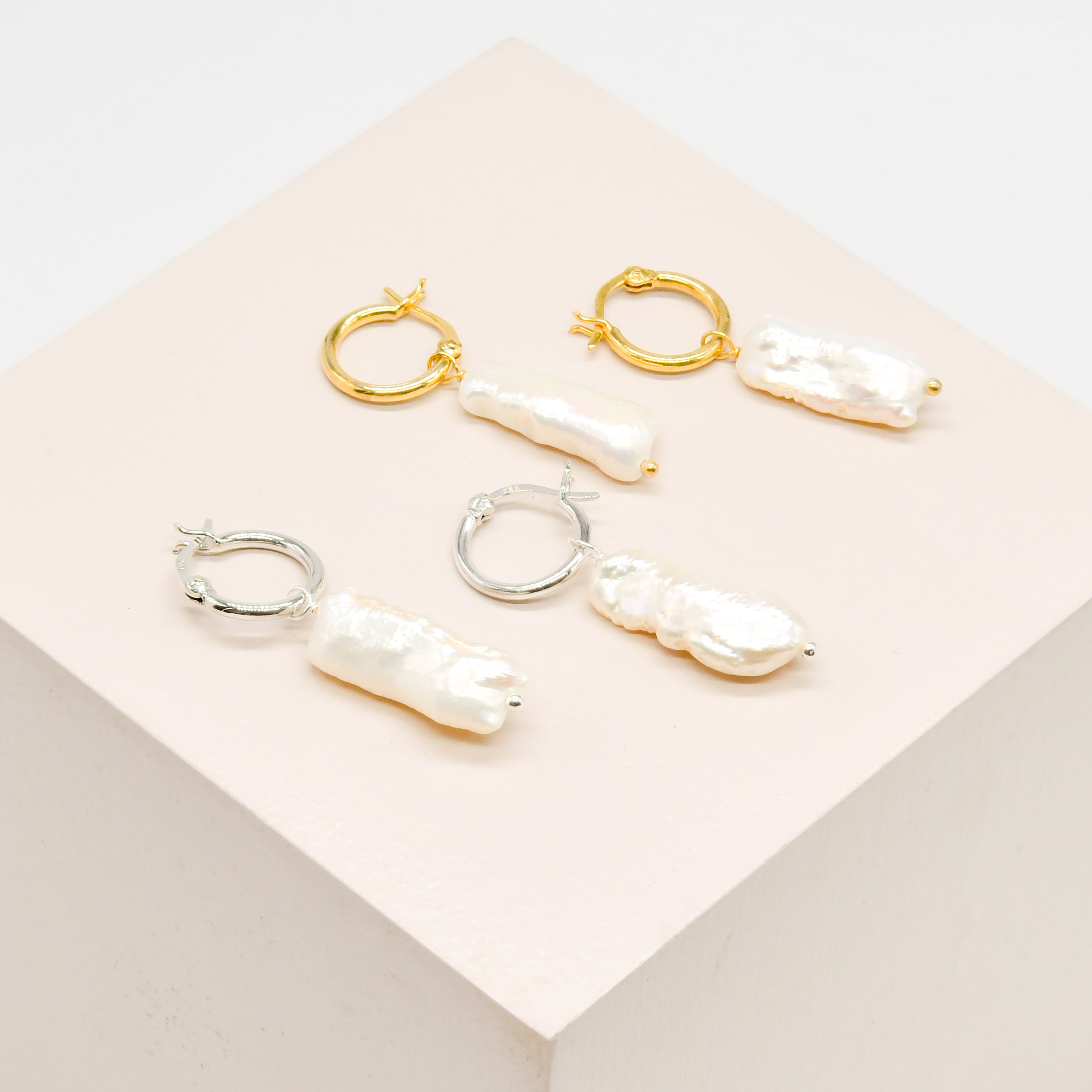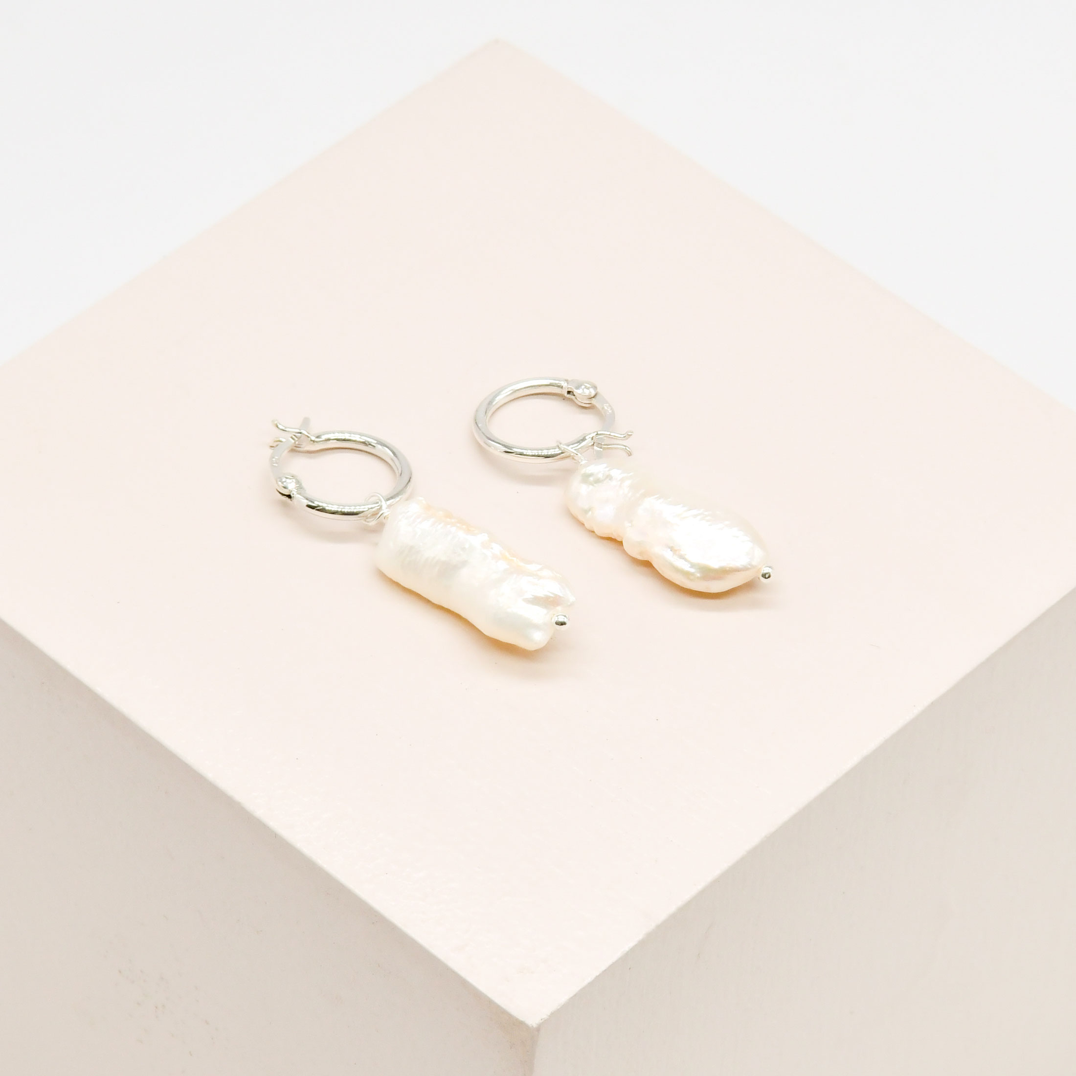 The pearl size is around 2×0.8×0.6 cm. Earring hoop dia is 1.4 cm. Drop length is 4 cm.