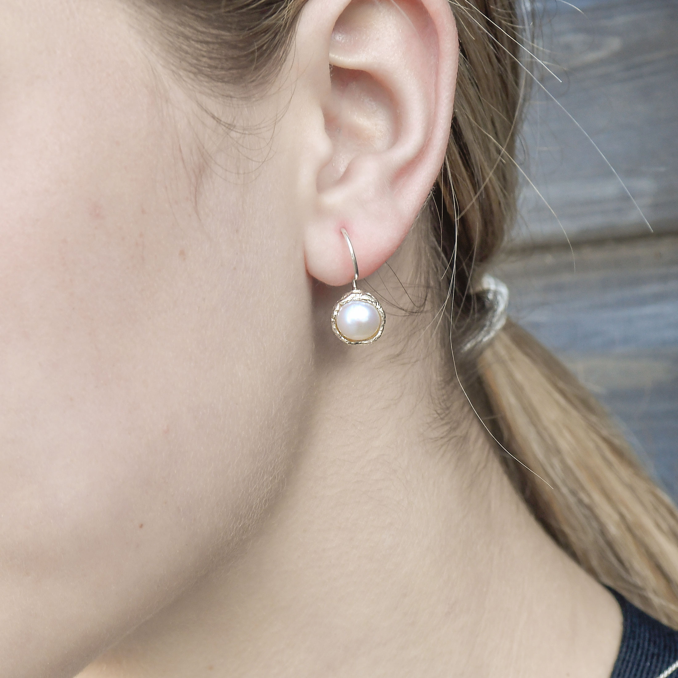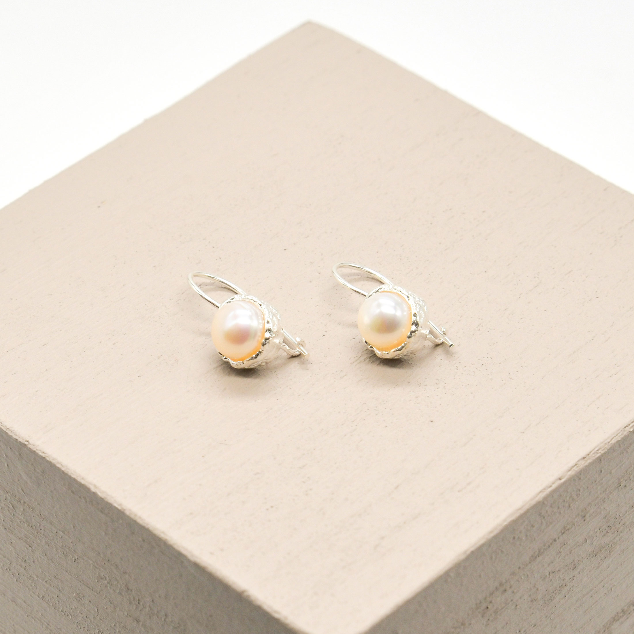 These pearls drop earrings are so stylish with texture details on the base of the pearls.