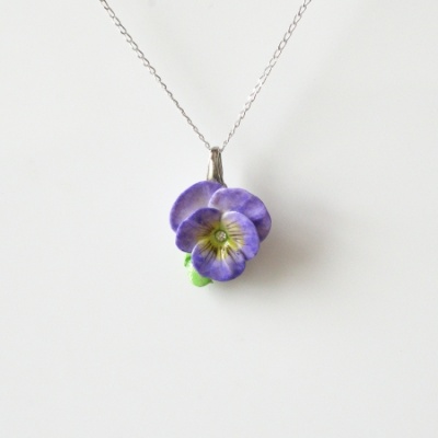 The porcelain pansy pendant is handmade and hand painted then embellished with Swarovski crystal detail.